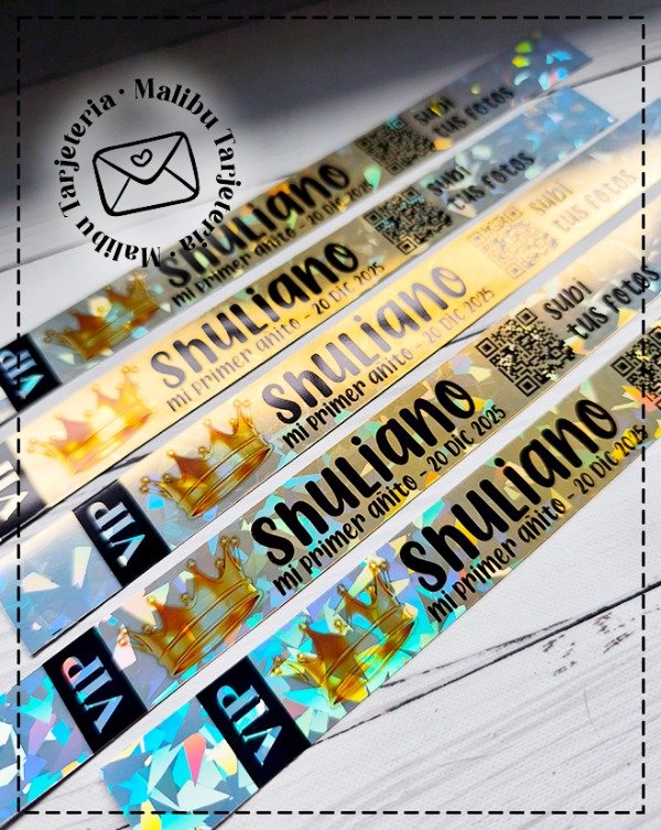 Nuestras pulseras precinto holográficas personalizadas combinan seguridad, resistencia y diseño, siendo ideales para todo tipo de eventos y celebraciones especiales.