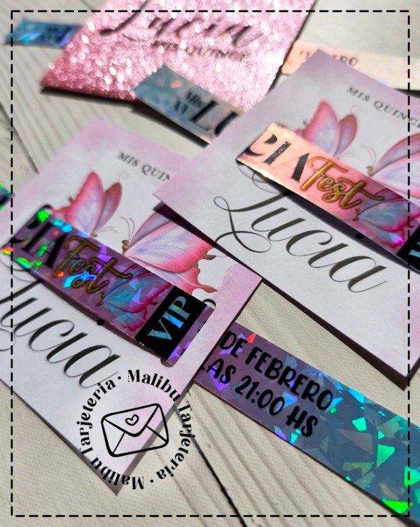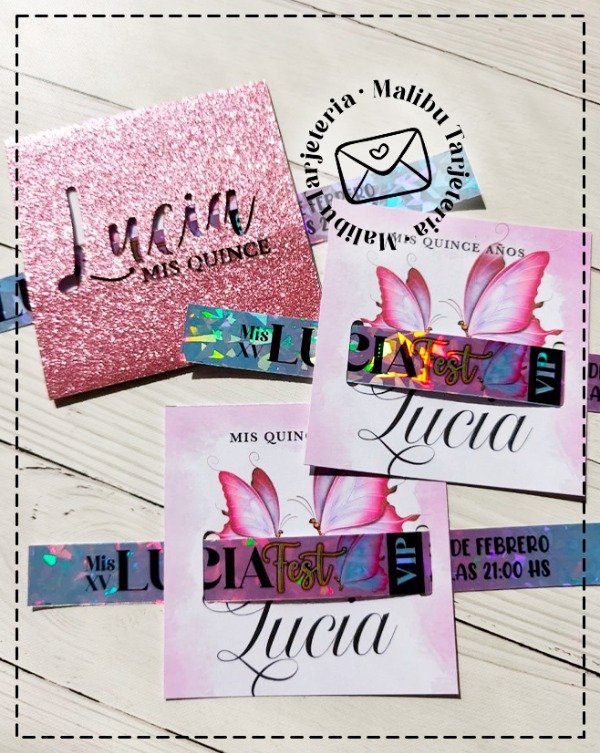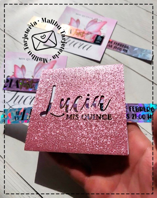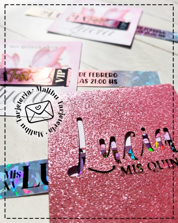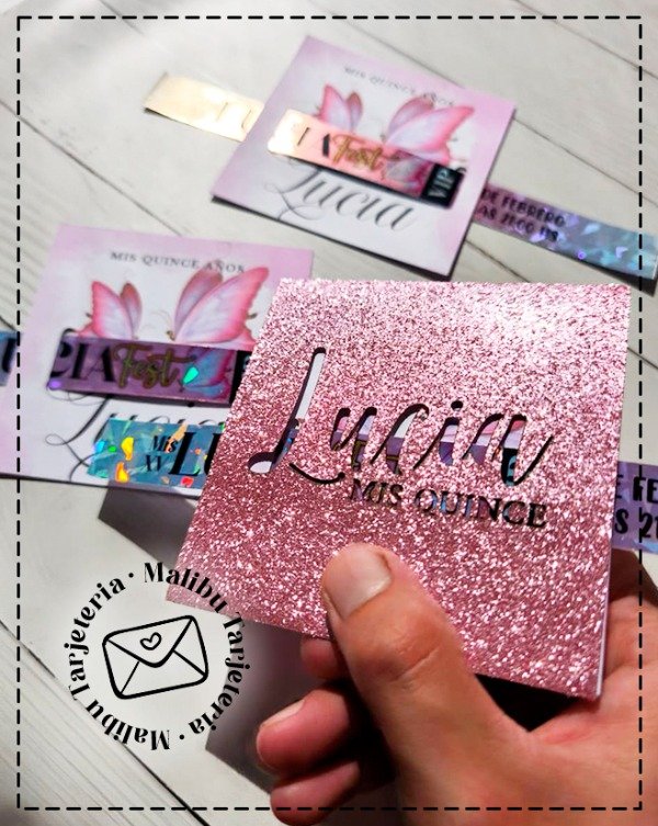 Tarjeta impresa y troquelada haciendo juego con el conjunto.